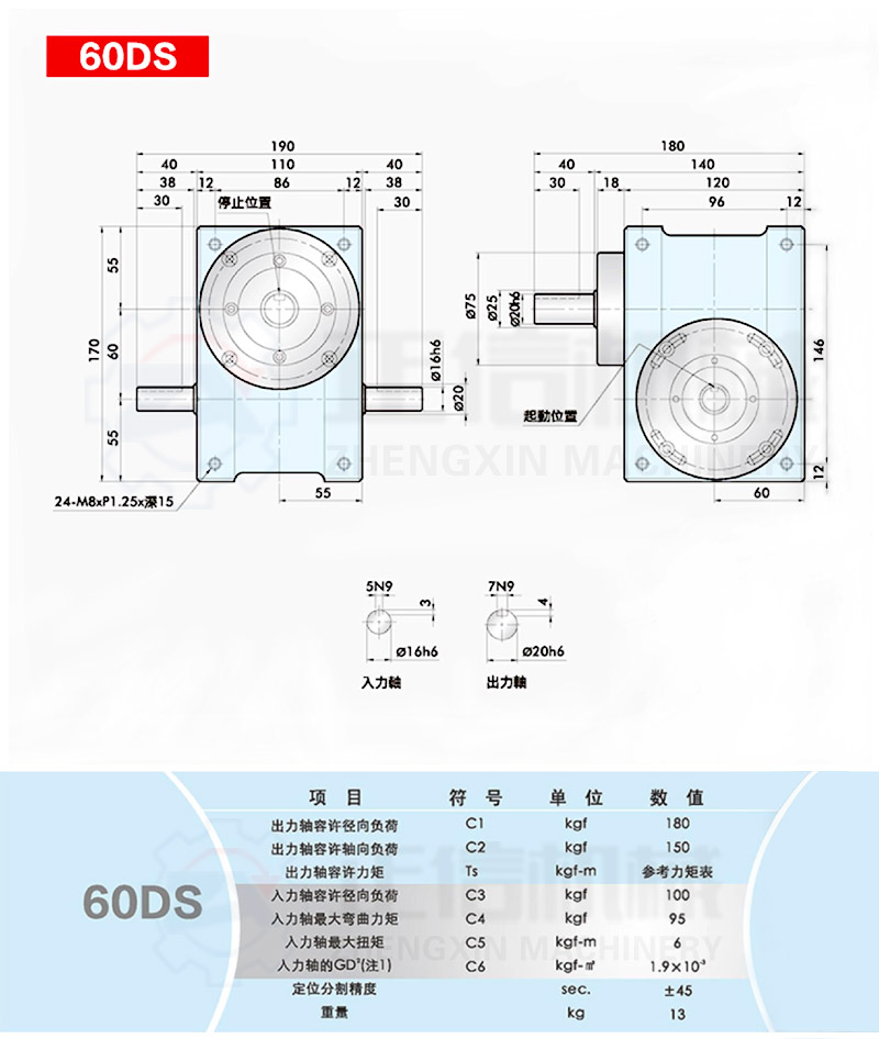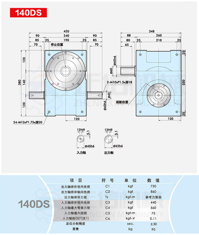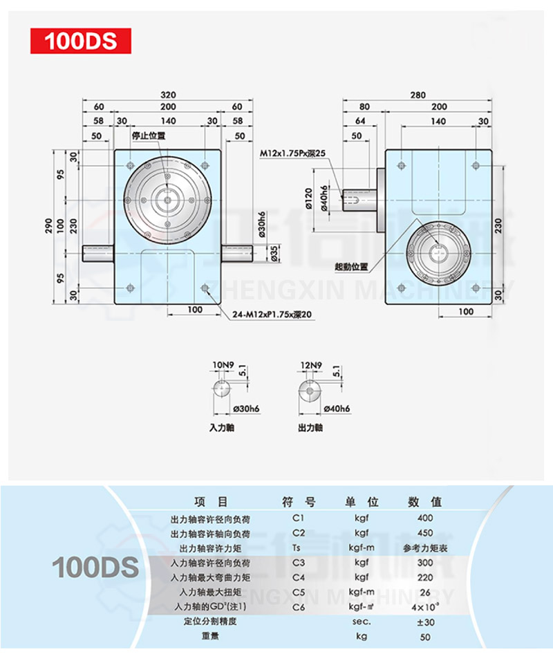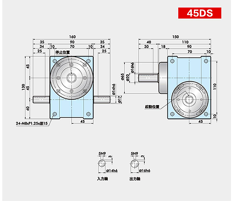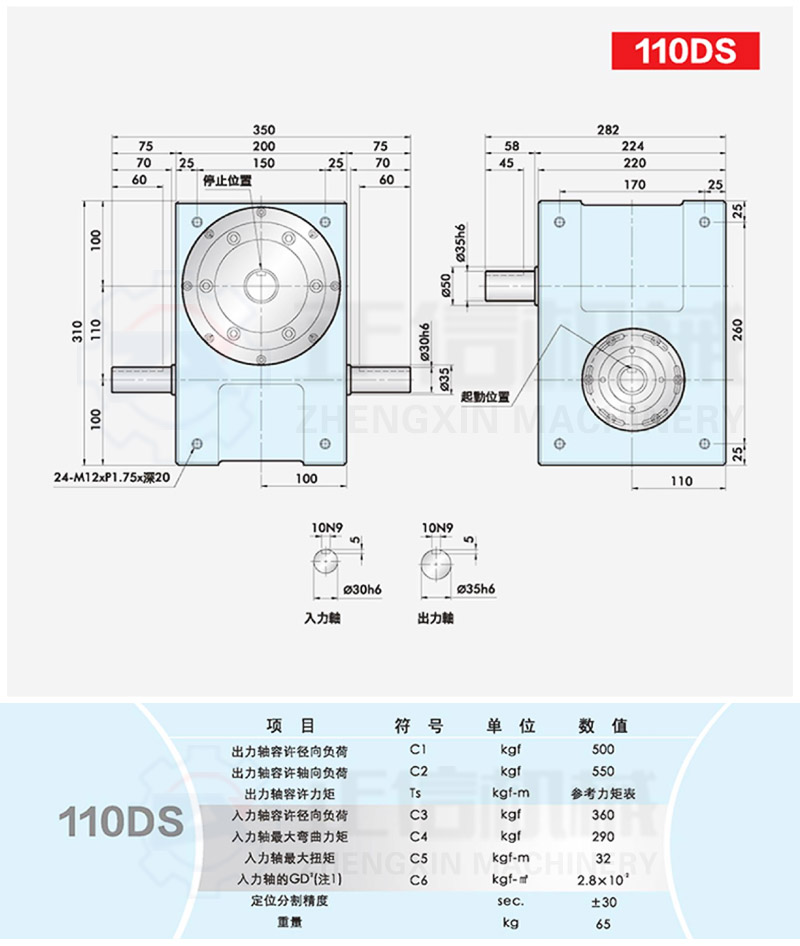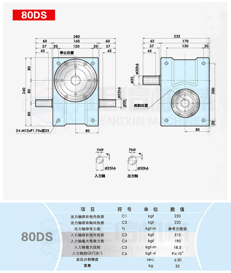 此系列機(jī)種為典型傳統(tǒng)式心軸造型,其在分割器上加工安裝配合齒輪、聯(lián)軸器或聯(lián)軸盤(pán),需特別注重孔徑公差(+0.015/-0)、及鍵槽公差(+0.015/-0),其使用場(chǎng)合在輸送帶驅(qū)動(dòng)、齒輪驅(qū)動(dòng)、無(wú)間隙聯(lián)軸器結(jié)合驅(qū)動(dòng)居多。